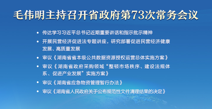 • 毛偉明主持省政府第73次常務會議 研究部署優化民營經濟發展環境、公共數據資源運營...